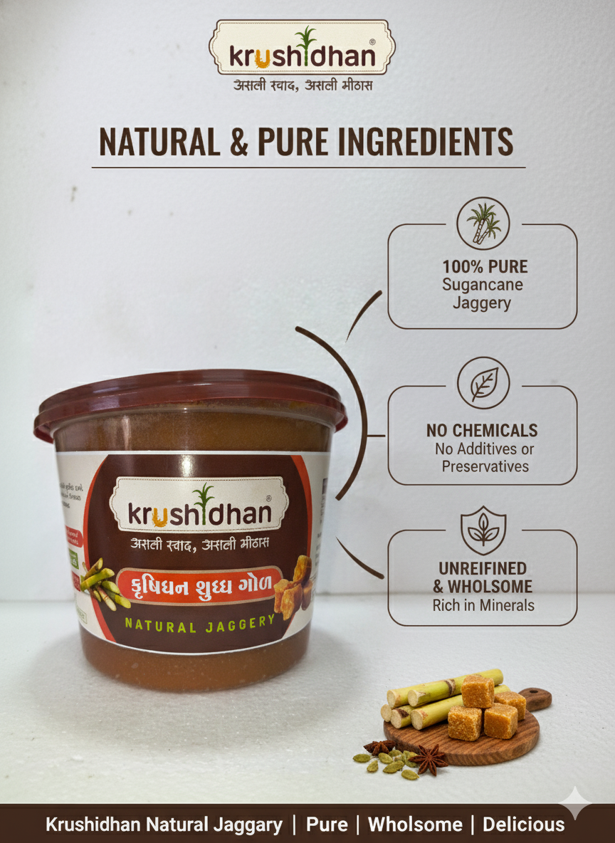 Free from chemicals, sulphur, and preservatives, this jaggery retains the natural nutrients and earthy flavor that refined sugar loses.