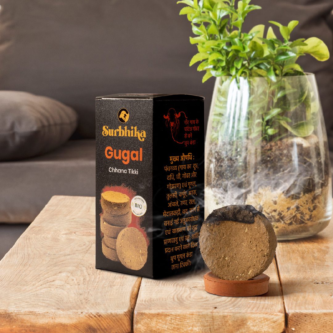 Experience the timeless essence of ancient Indian wellness with Surbhika Gugal Dhoop Chhana Tikki, now available on Swadeshiwala.co.in.